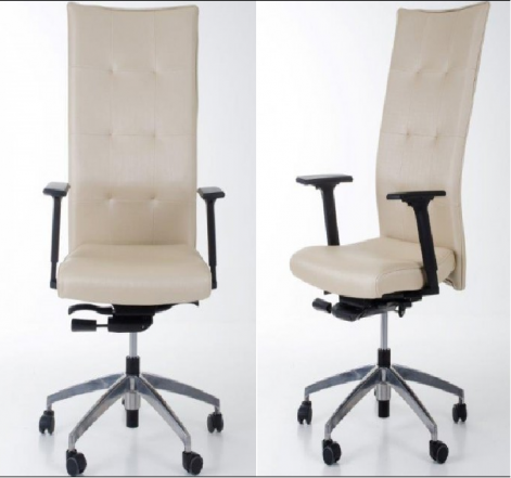 Encosto com estrutura metálica revestido, assento estofado,braços digitador com regulagem de altura, mecanismo relax sincronizado com travamento em várias posições e ajuste de tensão, aranha de alumínio ou preta arcada e rodízios de duplo giro com banda de rolagem em PU.