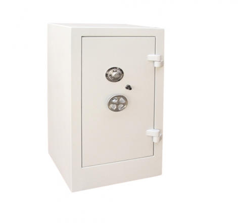 POSSUI UMA GAVETA E UMA PRATELEIRA INTERNA REMOVÍVEIS, SISTEMA DE FECHAMENTO COM SEGREDO MECÂNICO DE TRES DÍGITOS, FECHADURA E TRAVAMENTO POR FECHO DUPLO.