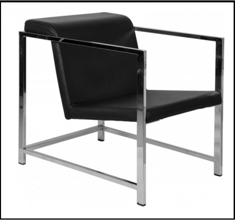 Poltrona de interlocução e apoio, para ambientes mais variados e funcionais. Estrutura cúbica em aço cromado.