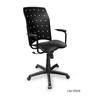 A cadeira Ergoplax Mais Presidente possui relax, regulagem de altura a gás, braço em polipropileno, e estofado com espuma injetada (revestimento somente na cor preta). Opções de base e estrutura nas cores preta ou cinza, e sete opções de cores para braços, assento e encosto.